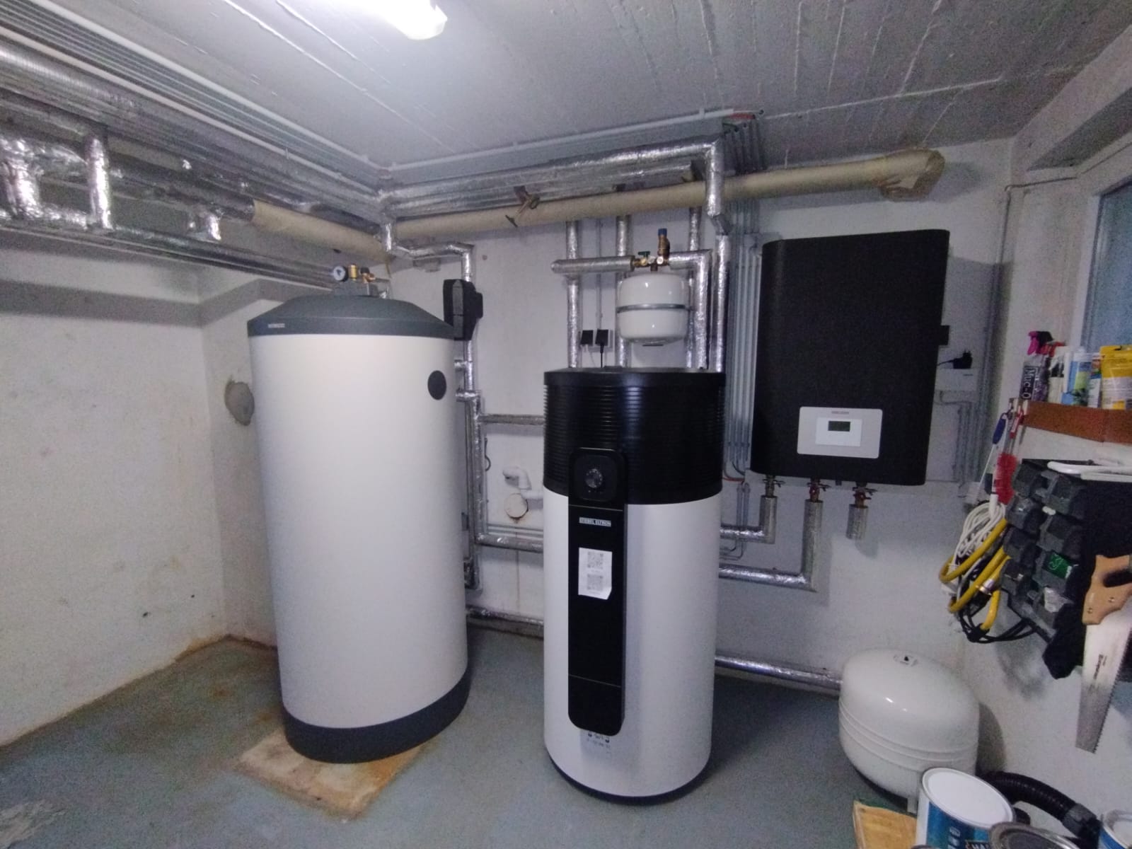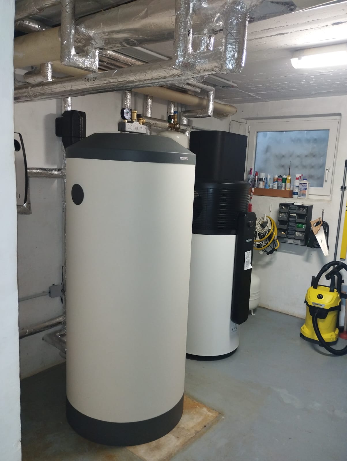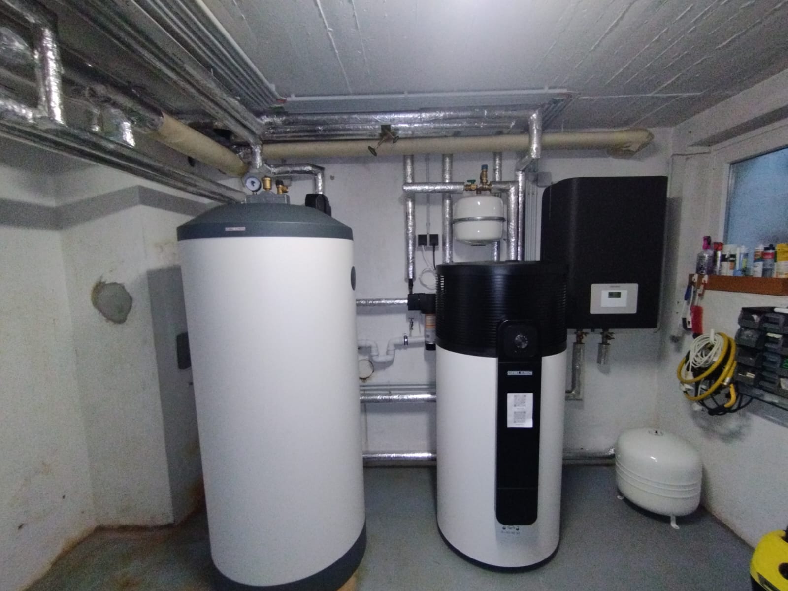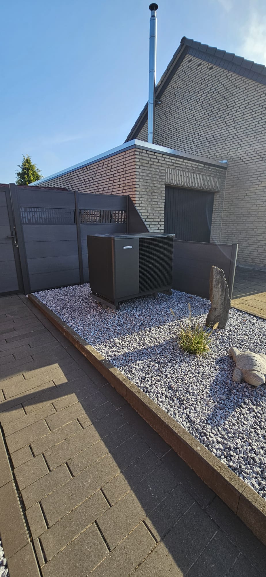 Die neue Wärmepumpe arbeitet mit dem natürlichen Kältemittel R290 und erfüllt damit höchste Umweltstandards. Durch diese Technologie konnte zudem eine 5 % höhere staatliche Förderung genutzt werden. Für die Warmwasserbereitung haben wir in enger Abstimmung mit dem Kunden eine WW-Wärmepumpe installiert.